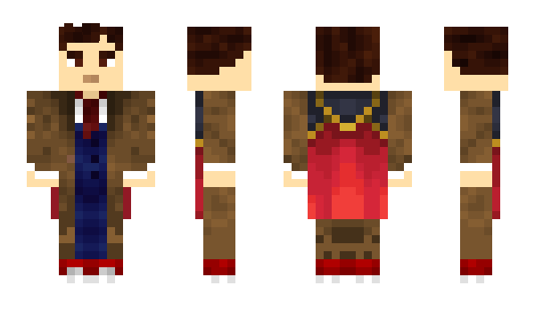 This is the Minecraft skin of the player "xTimeLordx", it was created in the Steve model (4px classic hands), this skin has a new format in 64x64 resolution.